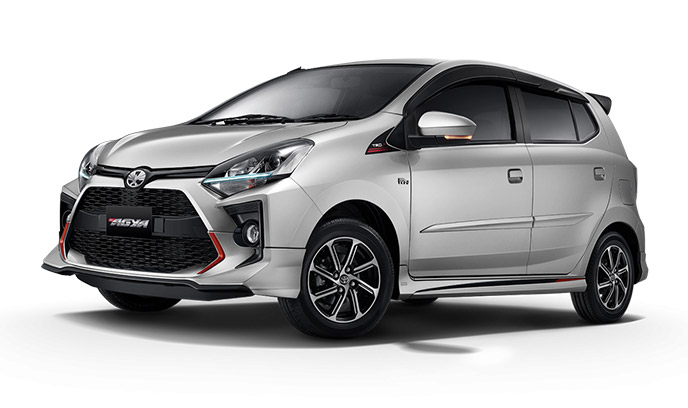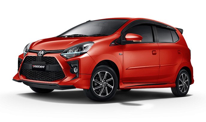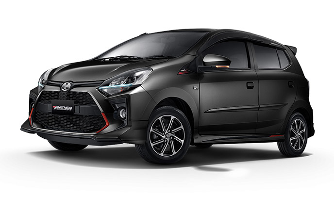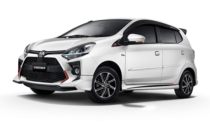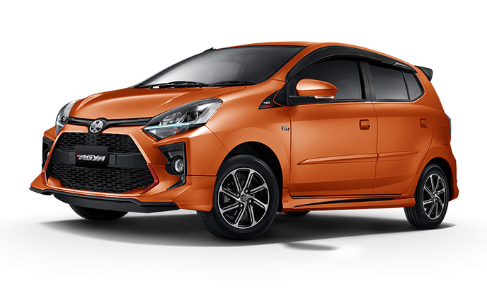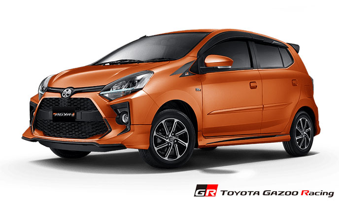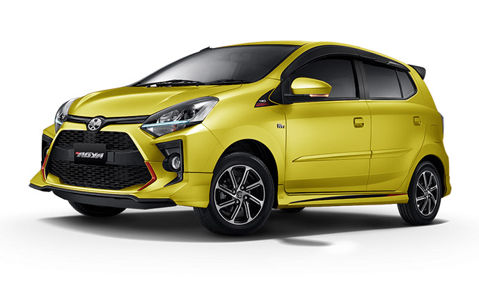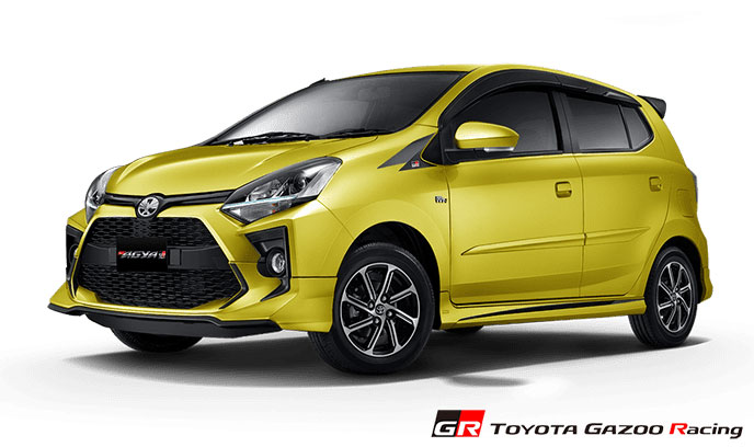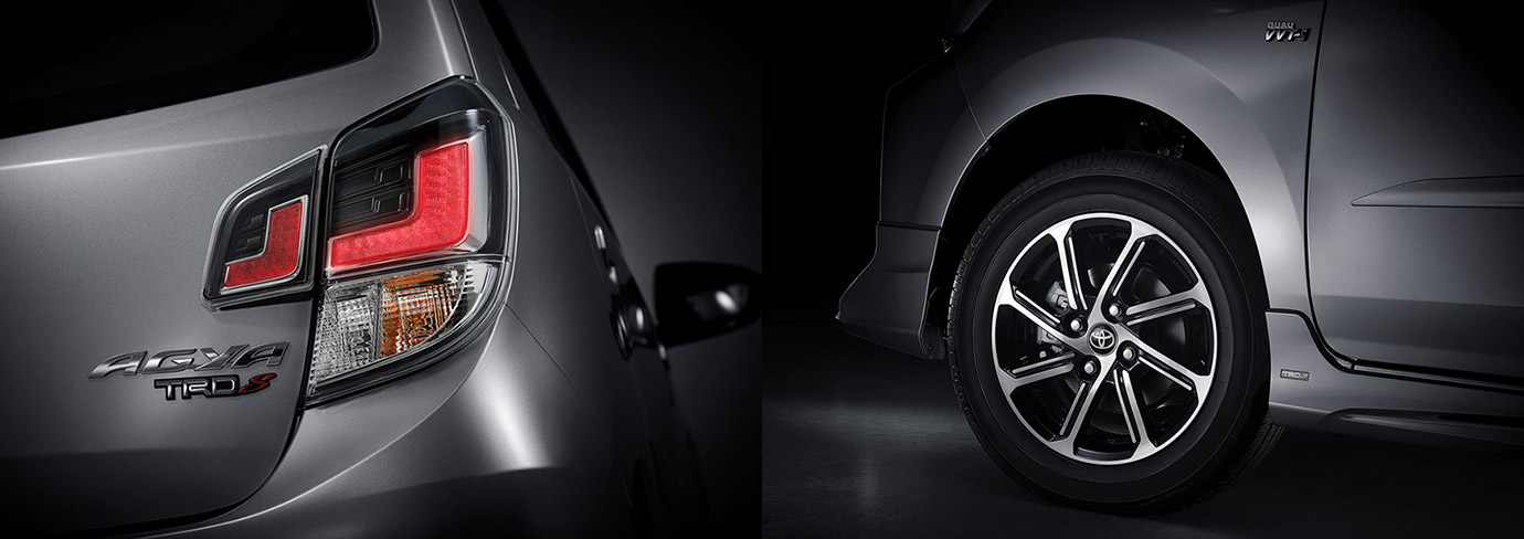 Sementara pada varian 1.2 TRD S, New Agya dilengkapi dengan New TRD S Front Spoiler, New TRD S Side Skirt, serta New TRD S Black Rear Spoiler yang semakin menguatkan kesan sporty. Selain itu, New Agya tampil dengan berbagai pilihan warna, dimana warna Silver Metallic dan Yellow mengalami refreshment, serta hadir dengan pilihan warna baru yaitu Orange Metallic.