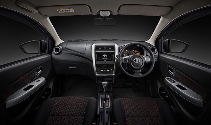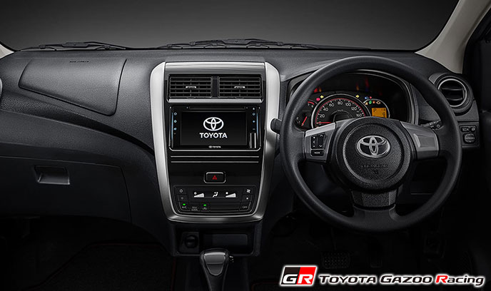 Pada sisi interior New Agya, sentuhan penyegaran diberikan untuk menghadirkan kenyamanan lebih baik dengan pengaplikasian advance features yang berkelas seperti New Engine Start Stop Button dan New Touch Screen Head Unit pada varian 1.2 TRD S. Tidak hanya itu, interior New Agya varian 1.2 G dan 1.2 TRD S juga dilengkapi dengan New Center Cluster with Digital AC.